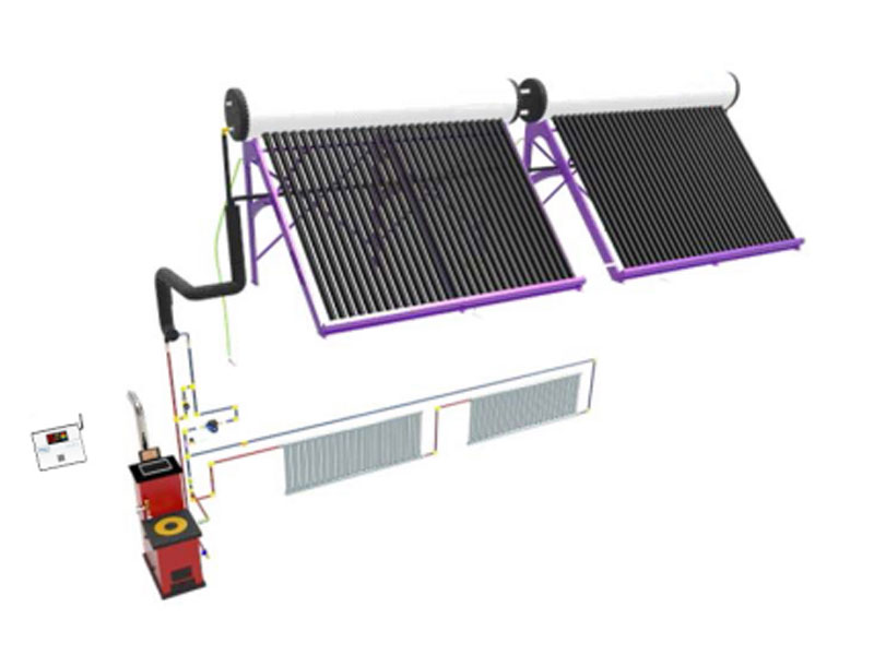 當(dāng)天氣不好或其他原因,太陽輻射能量不充足,水箱內(nèi)水溫不能滿足啟動(dòng)采暖功能使用要求時(shí),云控器控制電動(dòng)二通閥開啟,啟動(dòng)室內(nèi)采暖循環(huán)模式,自動(dòng)或手動(dòng)點(diǎn)燃生物質(zhì)采暖爐,將通過生物質(zhì)采暖爐內(nèi)部的水加熱,從而將熱量傳遞到房間內(nèi),提升房間內(nèi)的環(huán)境溫度。生物質(zhì)顆粒爐可自動(dòng)控制燃燒功率;壓塊爐需要手動(dòng)調(diào)節(jié)。